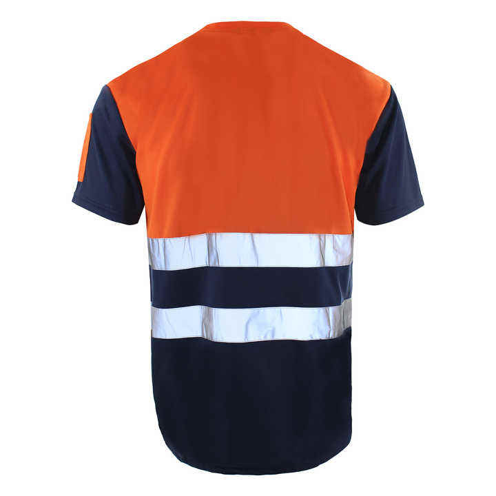 เสื้อยืดสะท้อนแสงแบบกำหนดเอง พิมพ์ลายโลโก้เพื่อความปลอดภัย สำหรับทุกเพศ ผ้าโพลีเอสเตอร์ถัก ระบายอากาศได้ดี