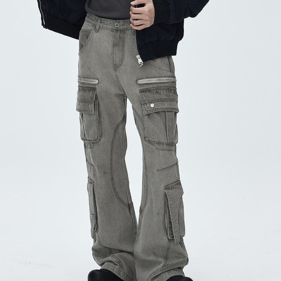 กางเกงยีนส์ทรงกระบอกแบบหนาพิเศษ ดีไซน์แบบชุดทำงานผู้ชาย มีกระเป๋าหลายช่อง ทรงหลวม ขากว้าง เหมาะสำหรับกิจกรรมกลางแจ้งและสวมใส่สบายๆ