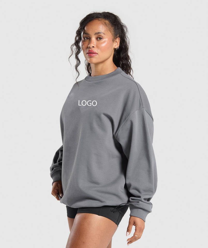 Women's Oversized Crewneck Sweatshirt 100% Cotton 380GSM Heavyweight Drop Shoulder Long Sleeve Pullover Casual Streetwear Hoodie