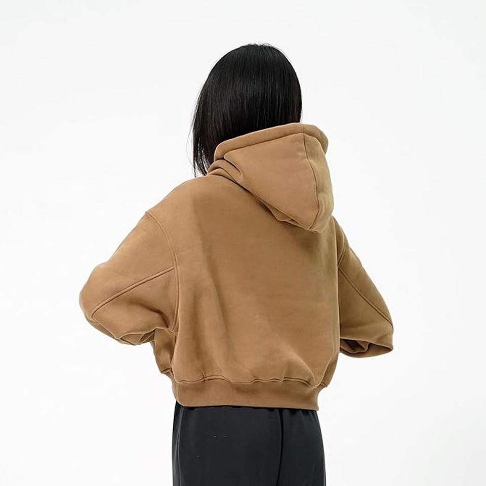 เสื้อครอปมีฮู้ดสำหรับผู้หญิงผ้าฝ้ายเทอร์รี่มีฮู้ดปรับแต่งได้เสื้อผ้าแนวสตรีทพลัสไซส์