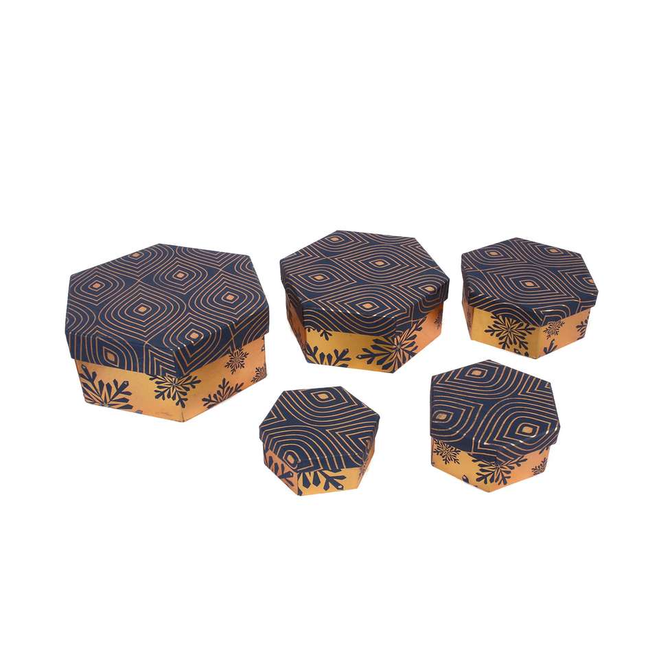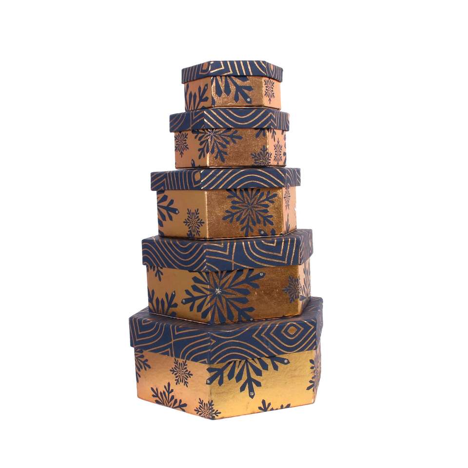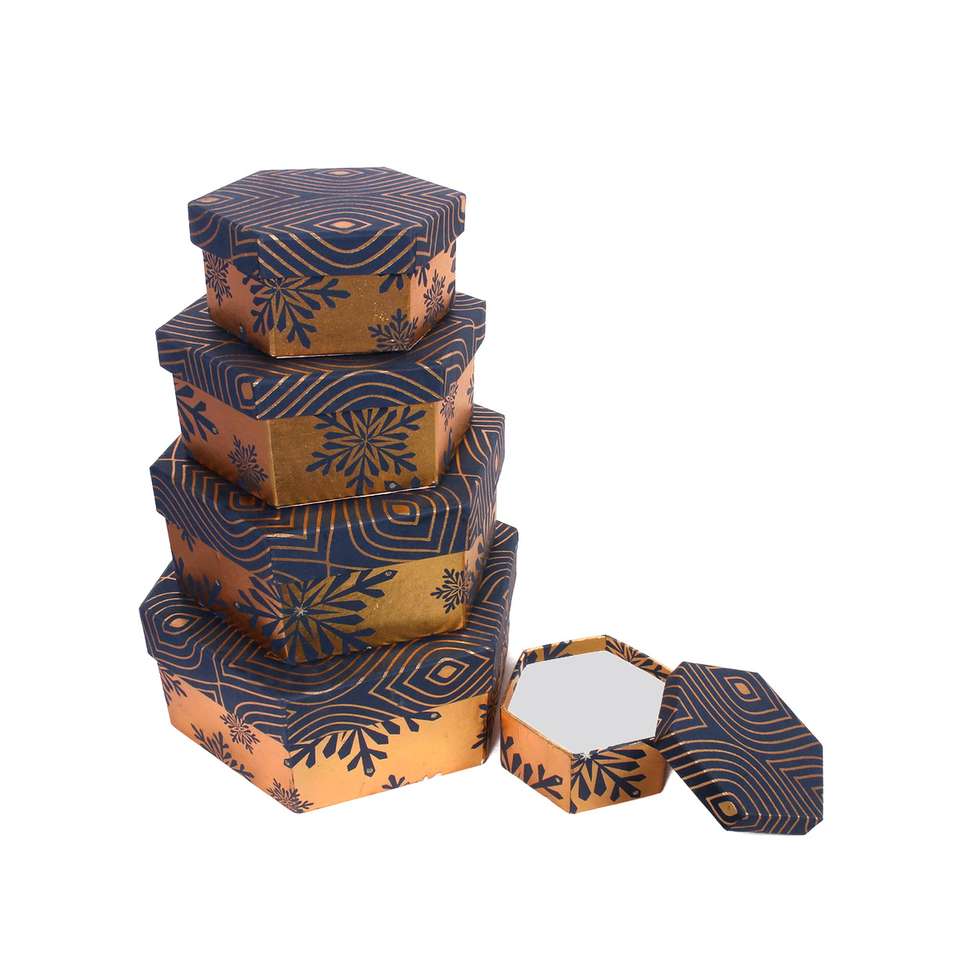 ชุดกล่องของขวัญกระดาษพิมพ์ลายทรงหกเหลี่ยมบรรจุภัณฑ์ตกแต่งแบบแข็งงานทำมือหลากขนาด