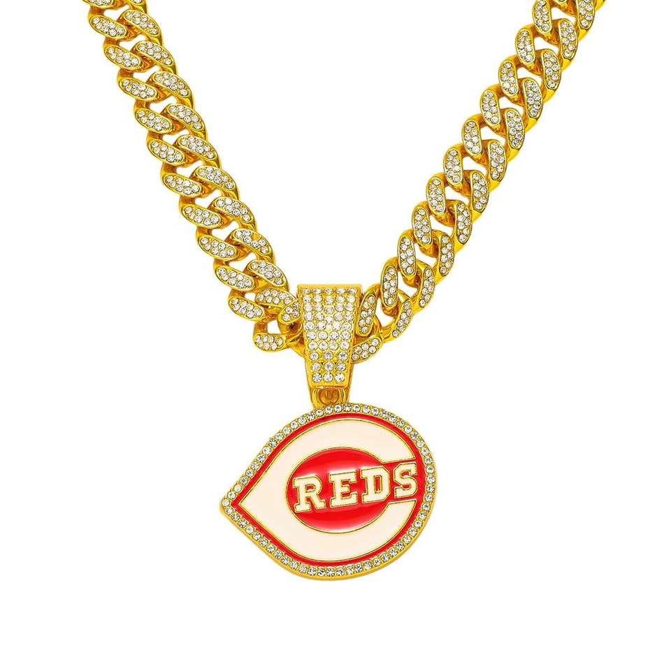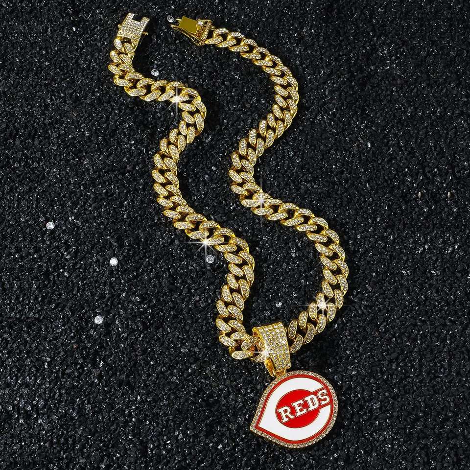 จี้เบสบอลซินซินเนตีเรดส์แบบยูนิเซ็กซ์ เงินแท้ 925 คุณภาพสูงสั่งทำพิเศษ ประดับมอสซาไนต์ สไตล์ฮิปฮอป พร้อมชาร์มทอง 14K