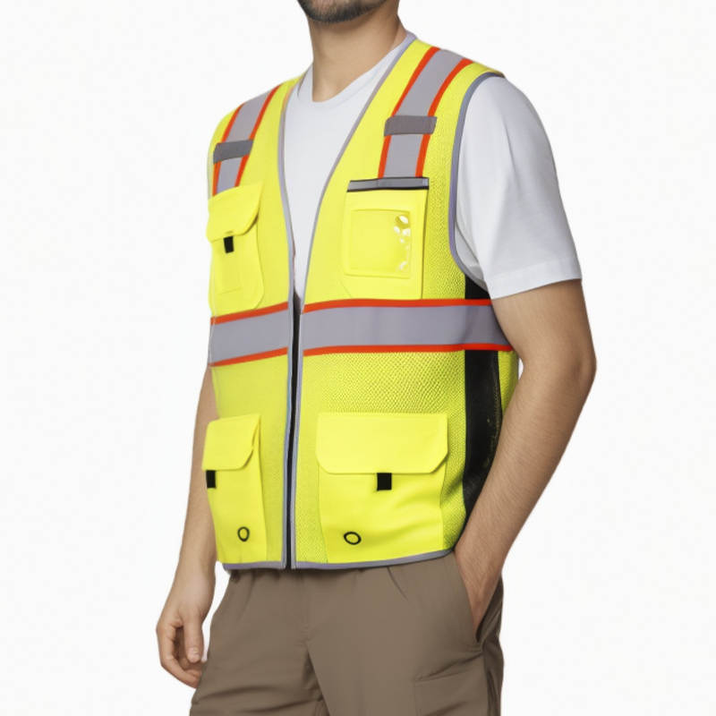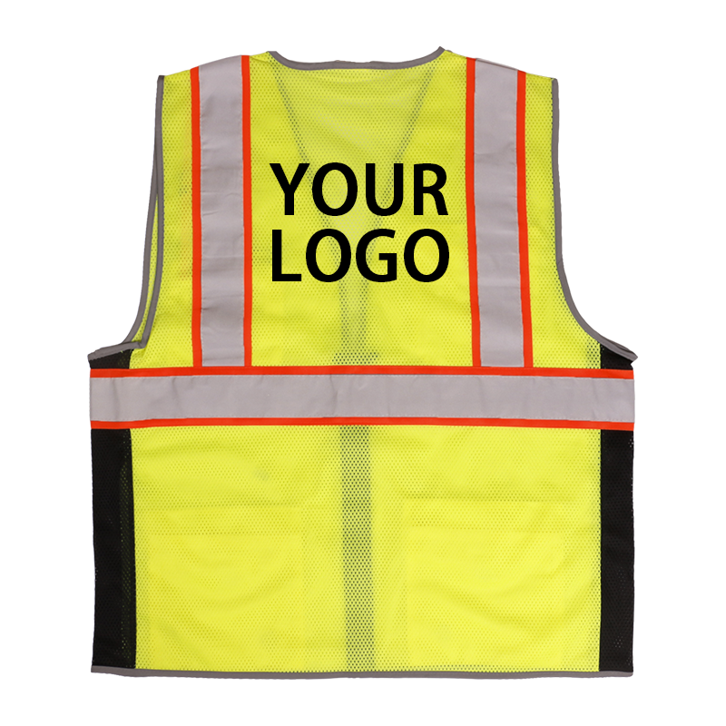 เสื้อกั๊กโพลีเอสเตอร์100% Hi-VIS สีเหลืองเรืองแสงออกแบบโลโก้ได้ตามต้องการ