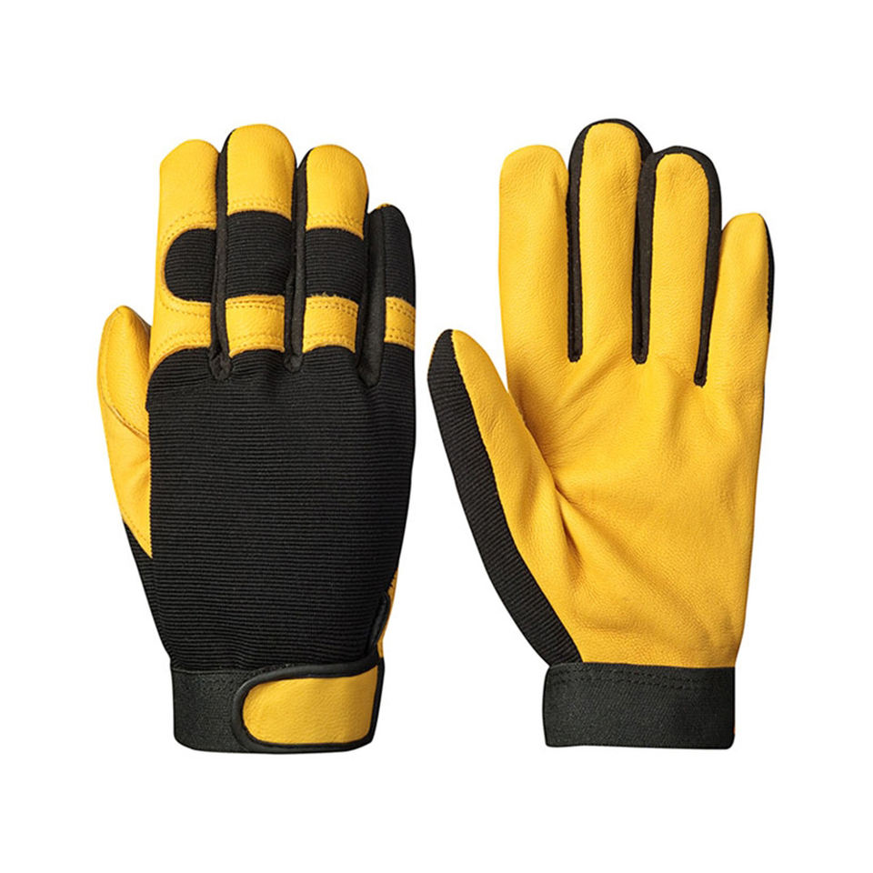 ถุงมือช่างหนังคุณภาพสูงแบบกำหนดเองได้ พร้อมสายรัดข้อมือยืดหยุ่นสำหรับการดูแลส่วนบุคคล-ป้องกันความร้อน ป้องกันการลื่น ปกป้องนิ้วมือและมือ