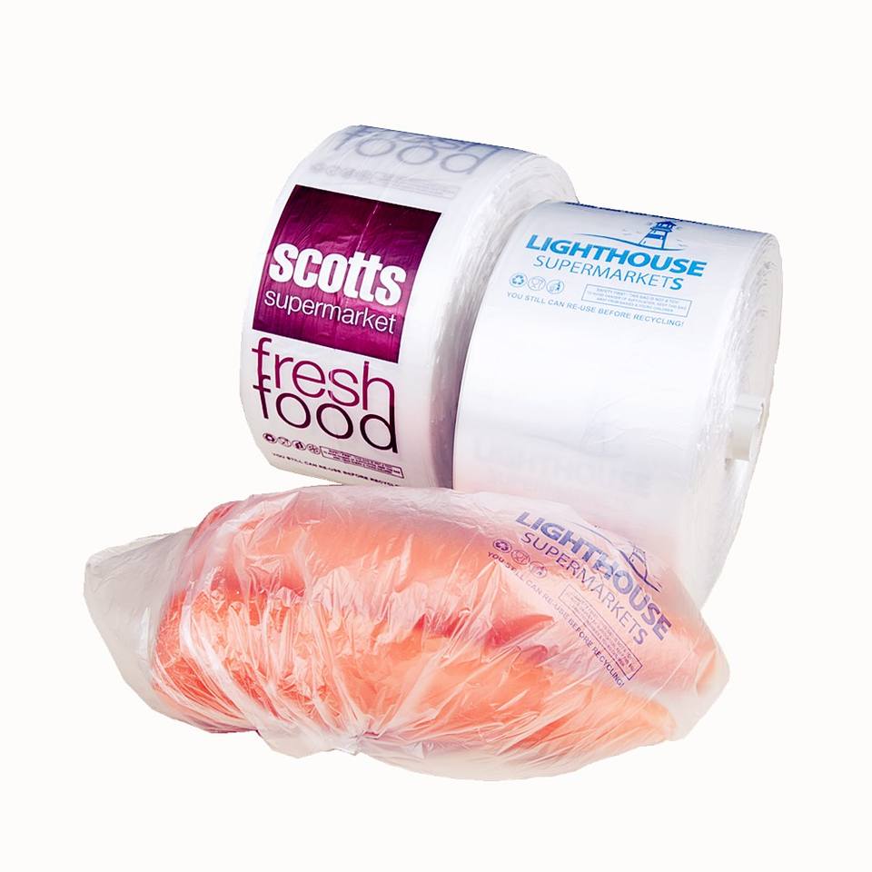 ถุงพลาสติกใสผลิตรับพิมพ์ลายสำหรับซูเปอร์มาร์เก็ตกระเป๋าแบนแบบม้วนได้