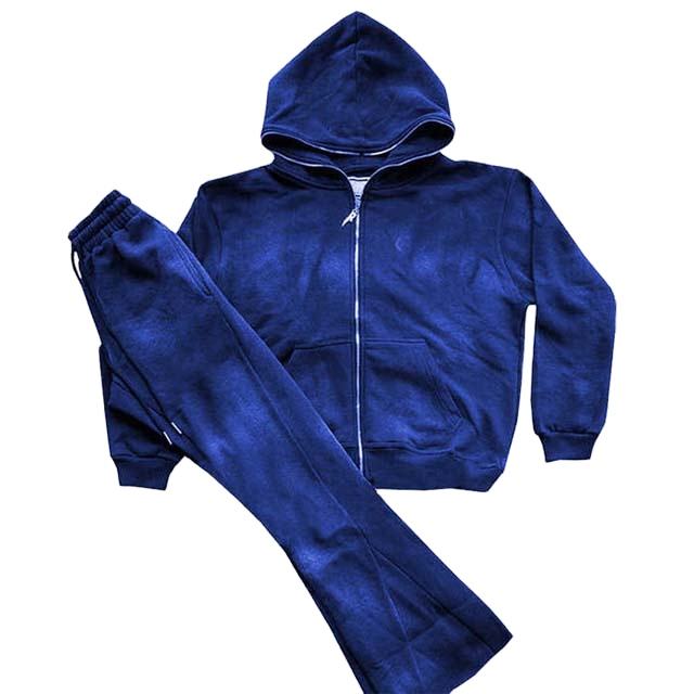 ชุดวอร์มผู้ชายแบบมีฮู้ดซิปเต็มตัว คุณภาพสูง ดีไซน์พิเศษ ทรงโอเวอร์ไซส์ สีซีดจางแบบโดนแดด กางเกงขาบาน ชุดวอร์มผู้ชายออกแบบเองได้