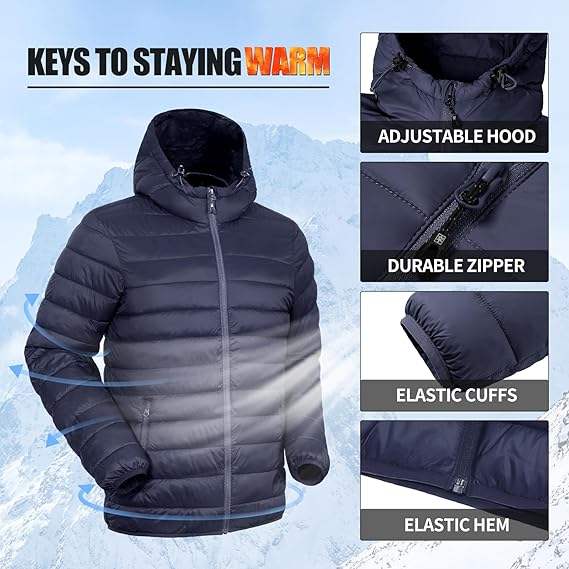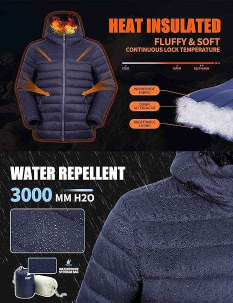 เสื้อโค้ทผู้ชายกันน้ำ XL เสื้อโค้ทแบบแพ็กได้สำหรับฤดูหนาวน้ำหนักเบาแบบลำลองใหม่