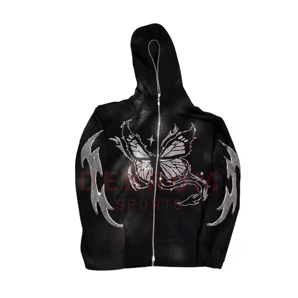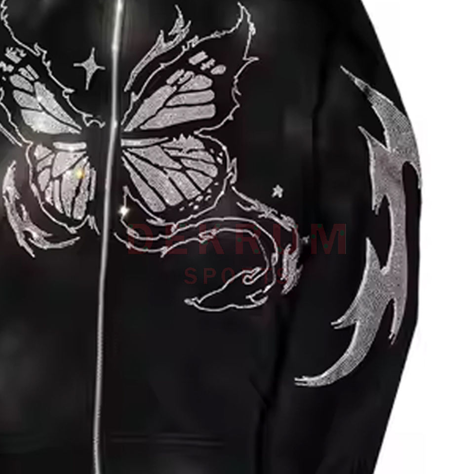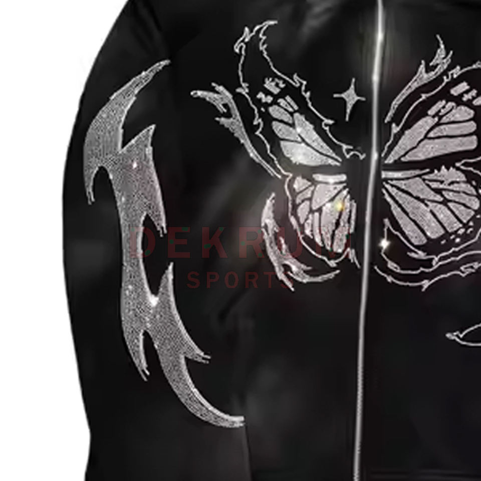 เสื้อฮู้ดผู้ชายฤดูหนาวคุณภาพสูงแบบกำหนดเอง ประดับด้วยคริสตัล-ดีไซน์ใหม่ ราคาขายส่ง รับทำสีและโลโก้ตามสั่ง