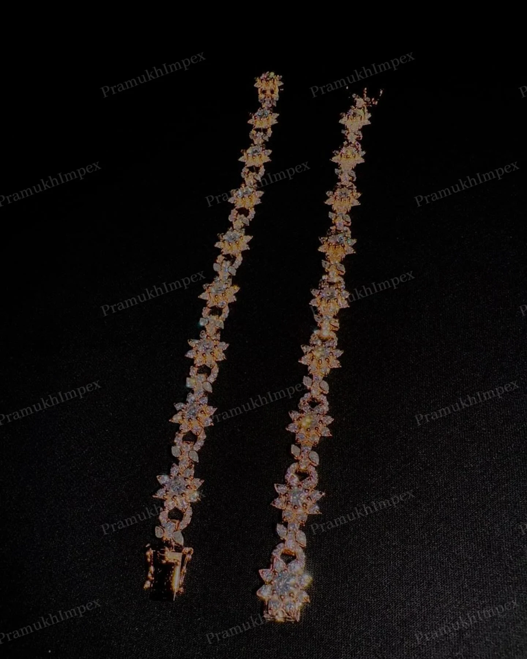 กำไลข้อมือสไตล์ฮิปฮอปประดับเพชรโมอิสซาไนต์คุณภาพสูงแบบกำหนดเอง เงินแท้ 925 ดีไซน์ดอกไม้ ประดับเพชรเต็มวง สำหรับทุกเพศ ราคาขายส่ง