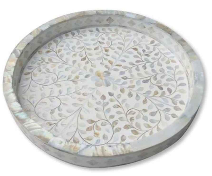 Customized High Quality Natural Wood Bone Inlay Serving Tray Handcrafted Eco-Friendly Dishes Plates for Home Hotels Directly