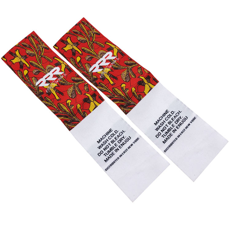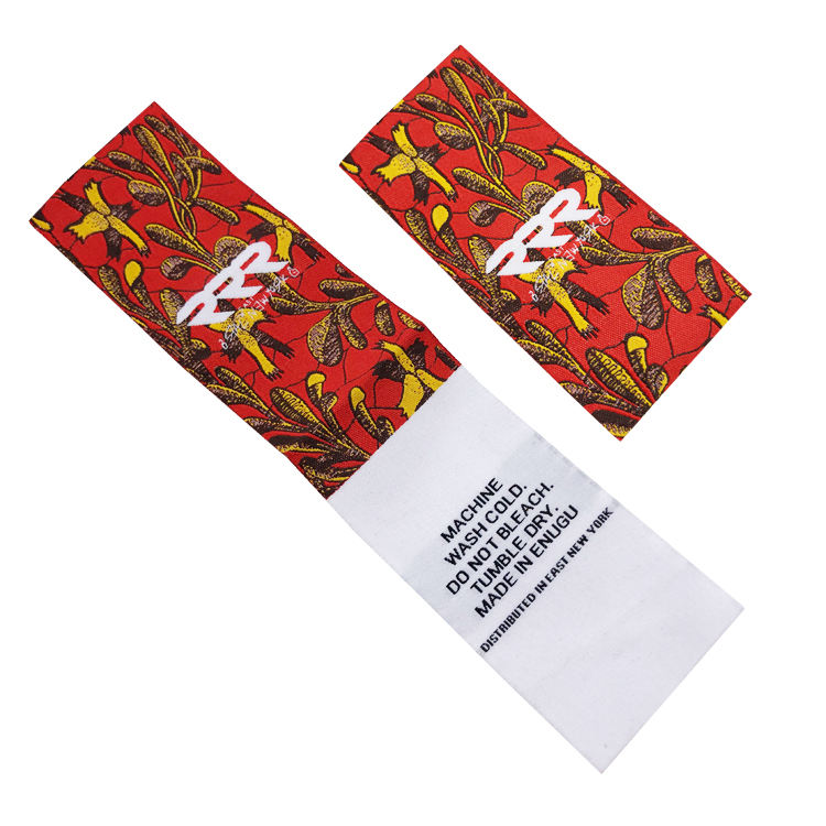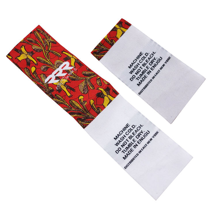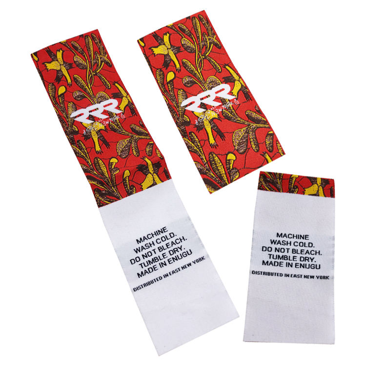 ป้ายทอคุณภาพสูงแบบกำหนดเอง ป้ายชื่อแบรนด์ โลโก้ ป้ายเสื้อผ้าลายดามัสก์ ป้ายเสื้อผ้าแบบพับกลาง