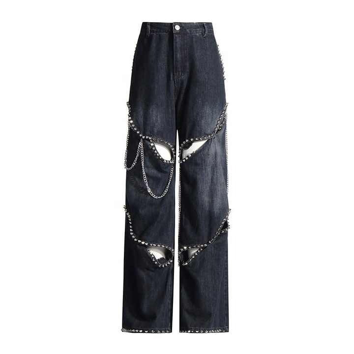 กางเกงยีนส์ลำลองทรงตรงสำหรับผู้หญิง รุ่นปี 2026 ราคาโรงงาน แต่งขอบรุ่ยแบบสั่งทำพิเศษ