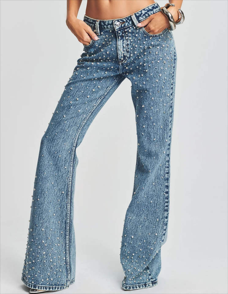 กางเกงยีนส์ขาตรงทรงหลวมสำหรับผู้หญิงแนวสตรีทสูงกางเกงยีนส์ลำลองระบายระบายอากาศได้ดีซักขนาดกลางมีรูสำหรับใส่สบาย