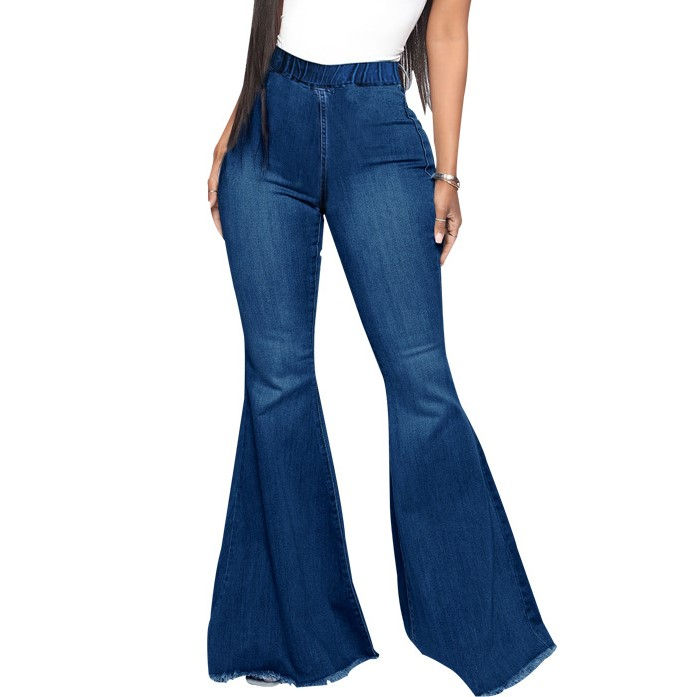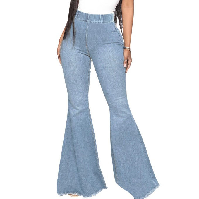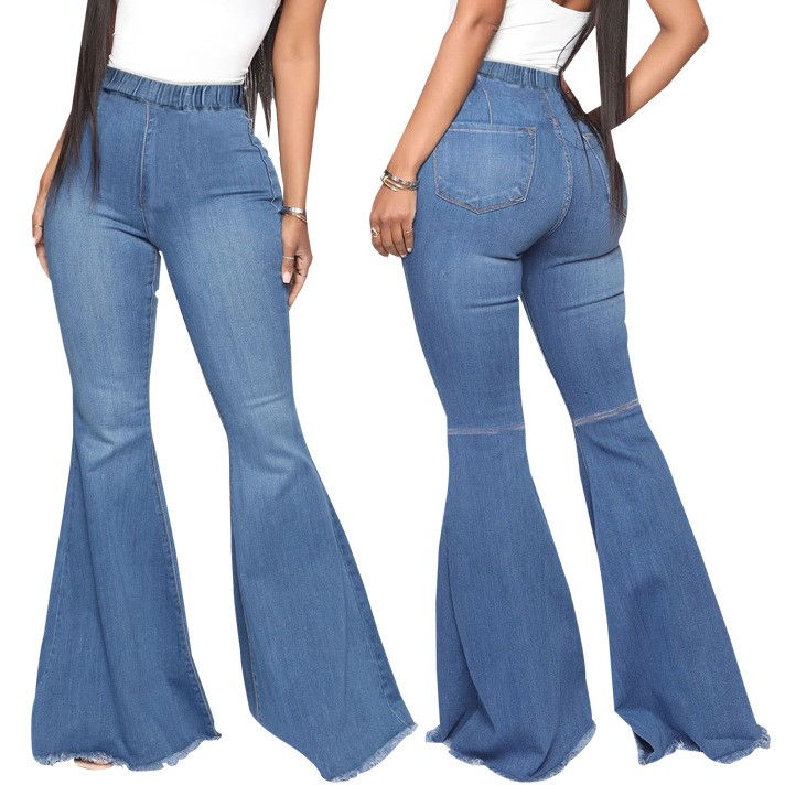 กางเกงยีนส์ทรงขากระดิ่งเอวสูงแบบสั่งตัด ผ้ายืดเข้ารูป สไตล์สตรีทแวร์ลำลองสำหรับผู้หญิง