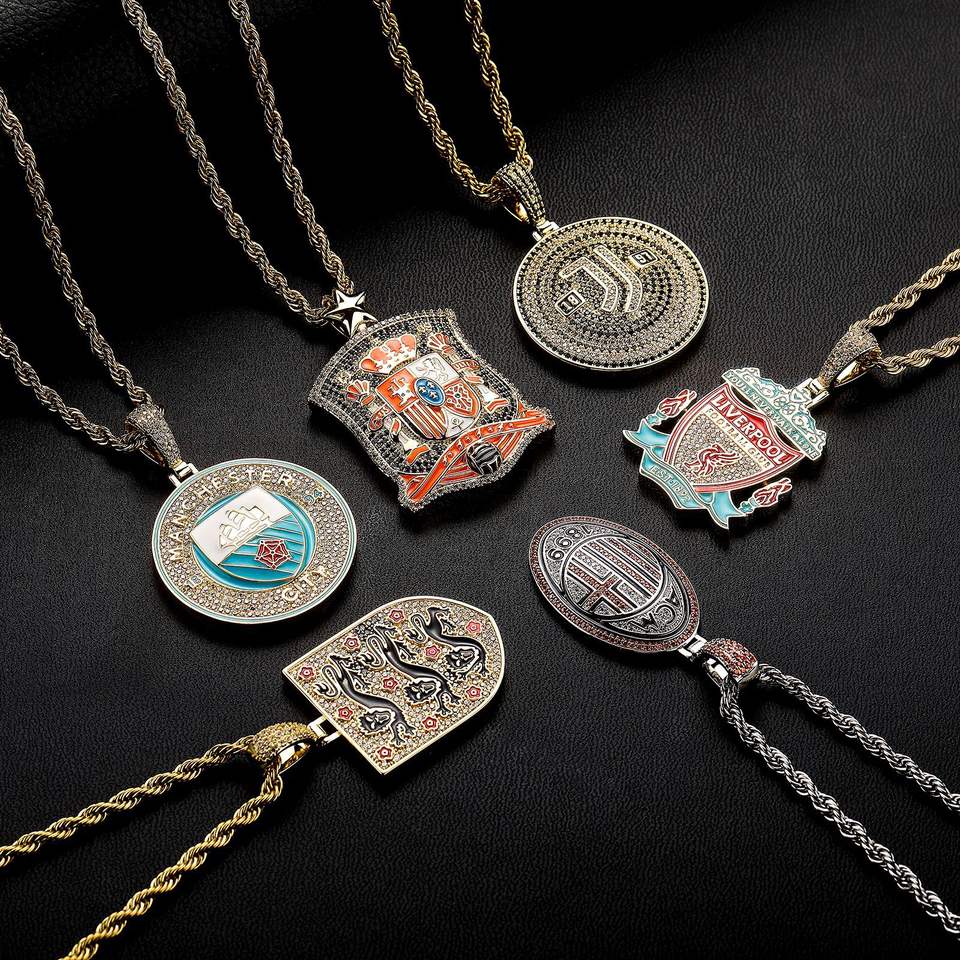 สร้อยคอจี้ฮิปฮอปหินธรรมชาติทองแดงคุณภาพสูงแบบกำหนดเองสำหรับทีมชาติเชลซี พร้อมสายโซ่แบบบิดสำหรับแชมป์