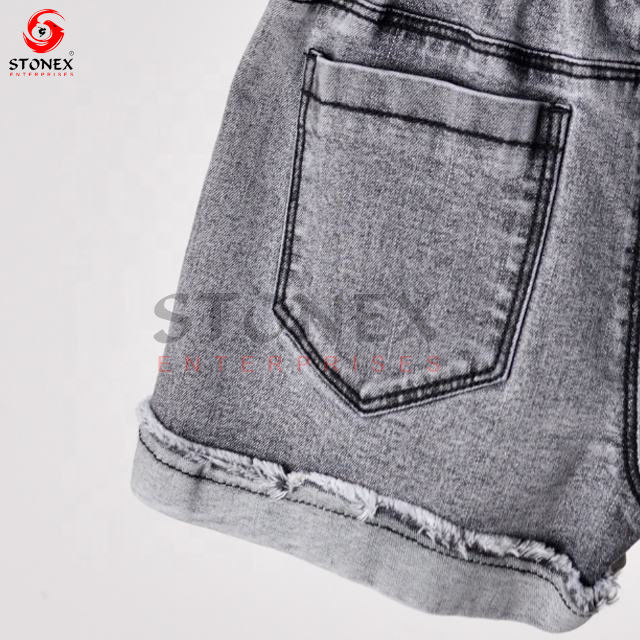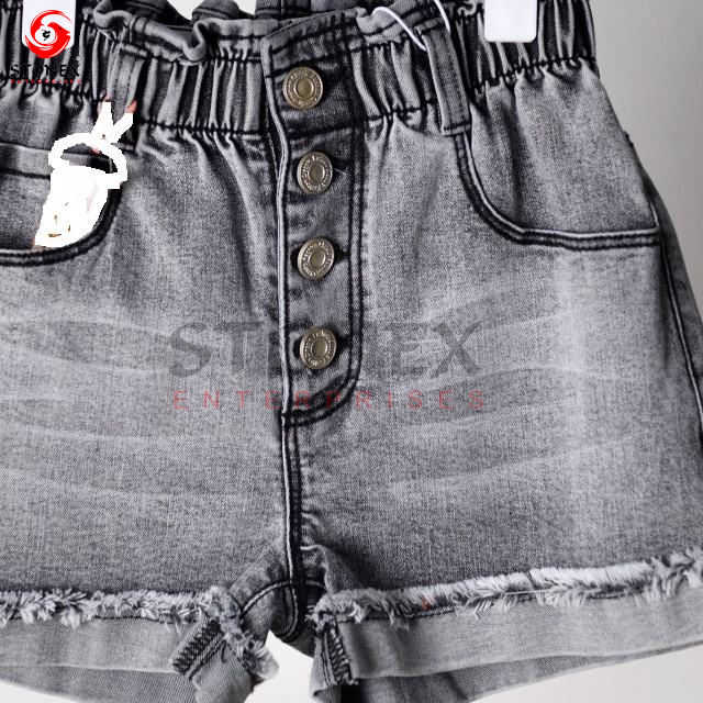 กางเกงยีนส์ขาสั้นเอวสูงสำหรับผู้หญิง แบบลำลอง น้ำหนักเบา ระบายอากาศได้ดี แห้งเร็ว ลุคยีนส์ฟอกขาดๆ