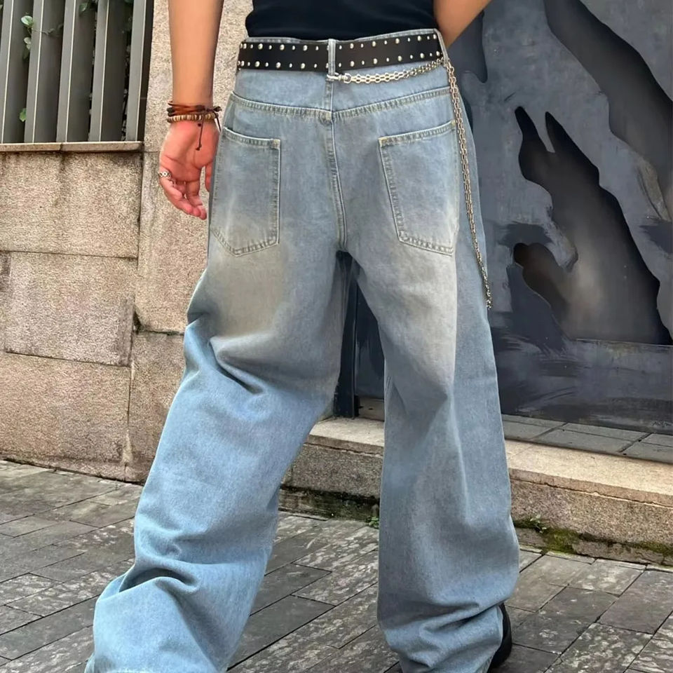 กางเกงยีนส์เดนิมทรงหลวมสีน้ำเงินฟอกซีดแบบพรีเมียมสำหรับผู้ชาย ขายดี ผลิตตามสั่ง ดีไซน์ OEM สไตล์ใหม่จากโรงงาน ขายส่ง