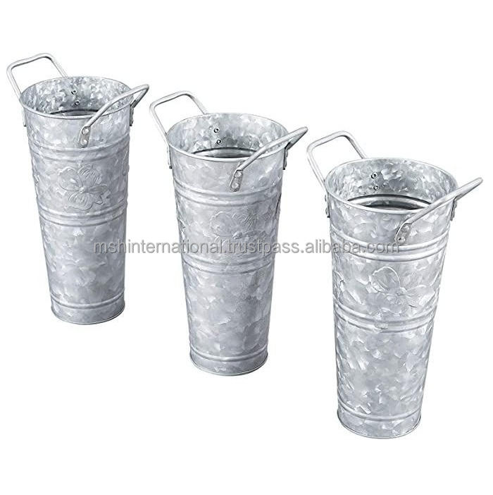 แจกันโลหะชุบสังกะสีทรงถังใส่ดอกไม้ฝรั่งเศสสำหรับตกแต่งผู้ผลิตในอินเดีย