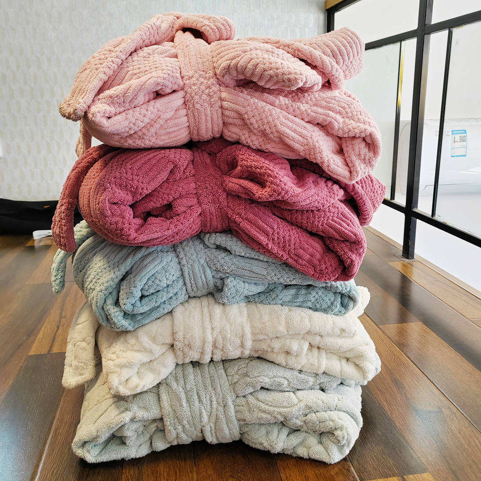 ผ้าขนหนูคลุมอาบน้ำแบบสปาหรูหรา ผ้าไมโครไฟเบอร์ถักแบบกำหนดเอง อบอุ่น เป็นมิตรกับสิ่งแวดล้อม แห้งเร็ว นุ่ม เรียบง่าย สำหรับทุกเพศ