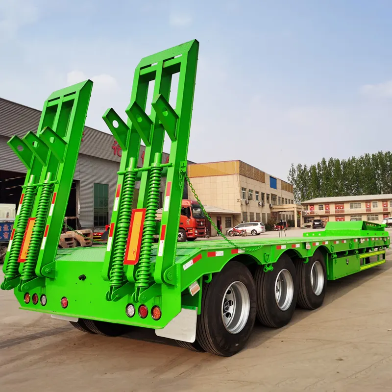 รถพ่วงพื้นเรียบแบบถอดได้ 3/4 เพลา ระบบไฮดรอลิกแบบกำหนดเอง รองรับน้ำหนัก 60 ตัน