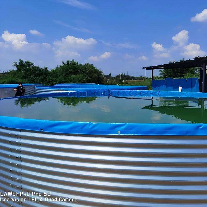 อุปกรณ์เพาะเลี้ยงสัตว์น้ำในร่มแบบกำหนดเองได้ ระบบเพาะเลี้ยงปลาและกุ้งแบบหมุนเวียน พร้อมเหล็กชุบสังกะสีร้อน ความจุ 5 ม. - 1000 ม.