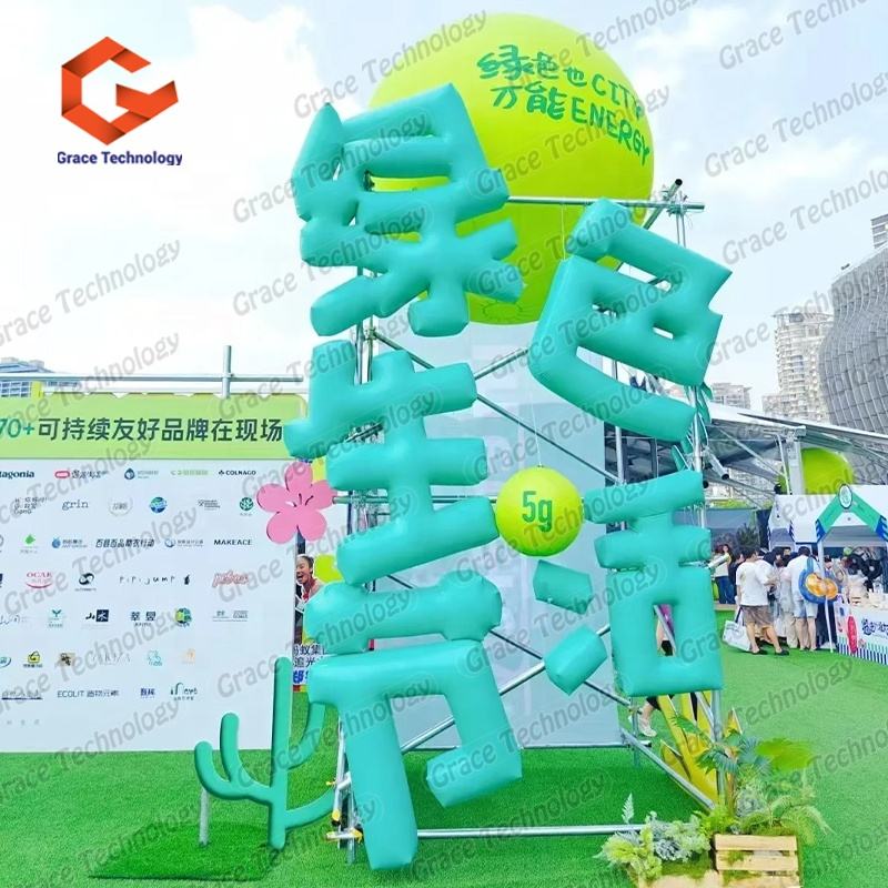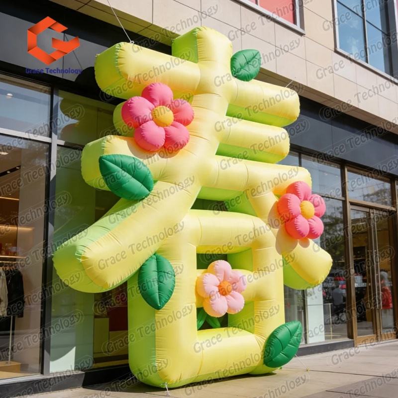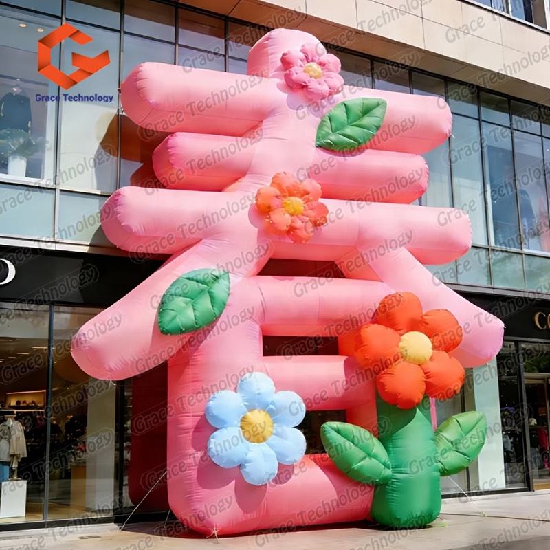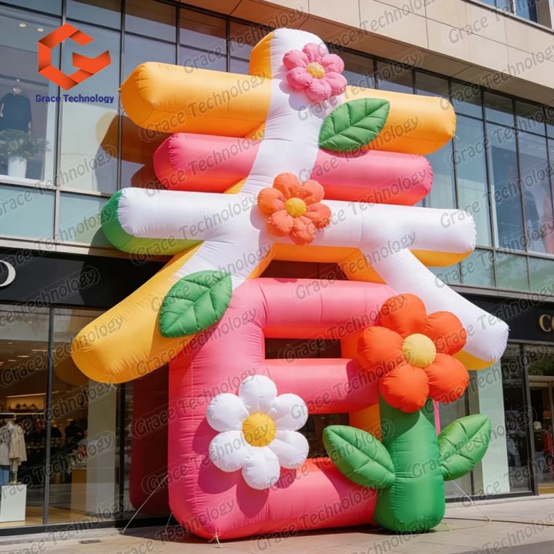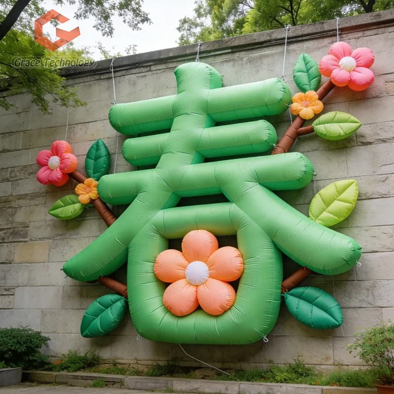 ตัวอักษรจีนเป่าลมแบบกำหนดเองพร้อมดอกไม้สำหรับตกแต่งโฆษณา งานปาร์ตี้ และงานอีเว้นท์