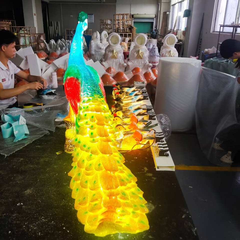 ไฟสวน LED รูปนกยูง 3 มิติ แบบกำหนดเองได้ มาตรฐาน IP65 วัสดุเรซิ่นใยแก้วโปร่งใส สำหรับตกแต่งงานแต่งงานกลางแจ้ง
