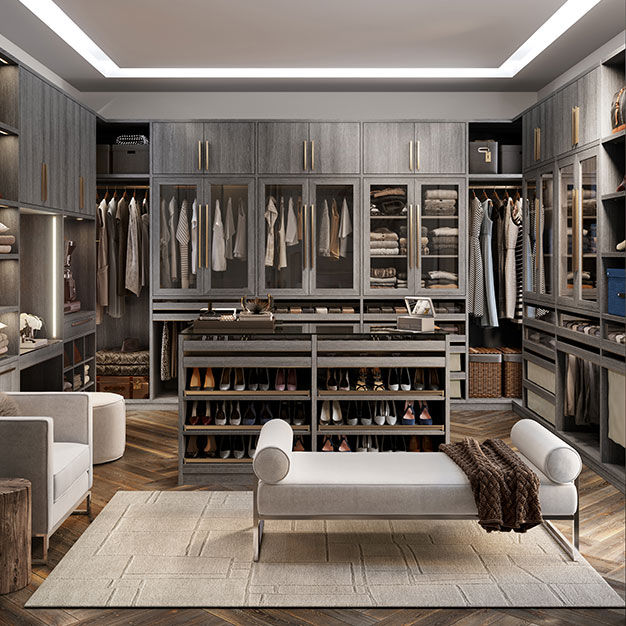 เฟอร์นิเจอร์ห้องนอนสไตล์อิตาลีสั่งทำพิเศษ ตู้เสื้อผ้าแบบวอล์กอินสุดหรู พร้อมไฟ LED ตู้เสื้อผ้าและตู้แบบเกาะกลาง