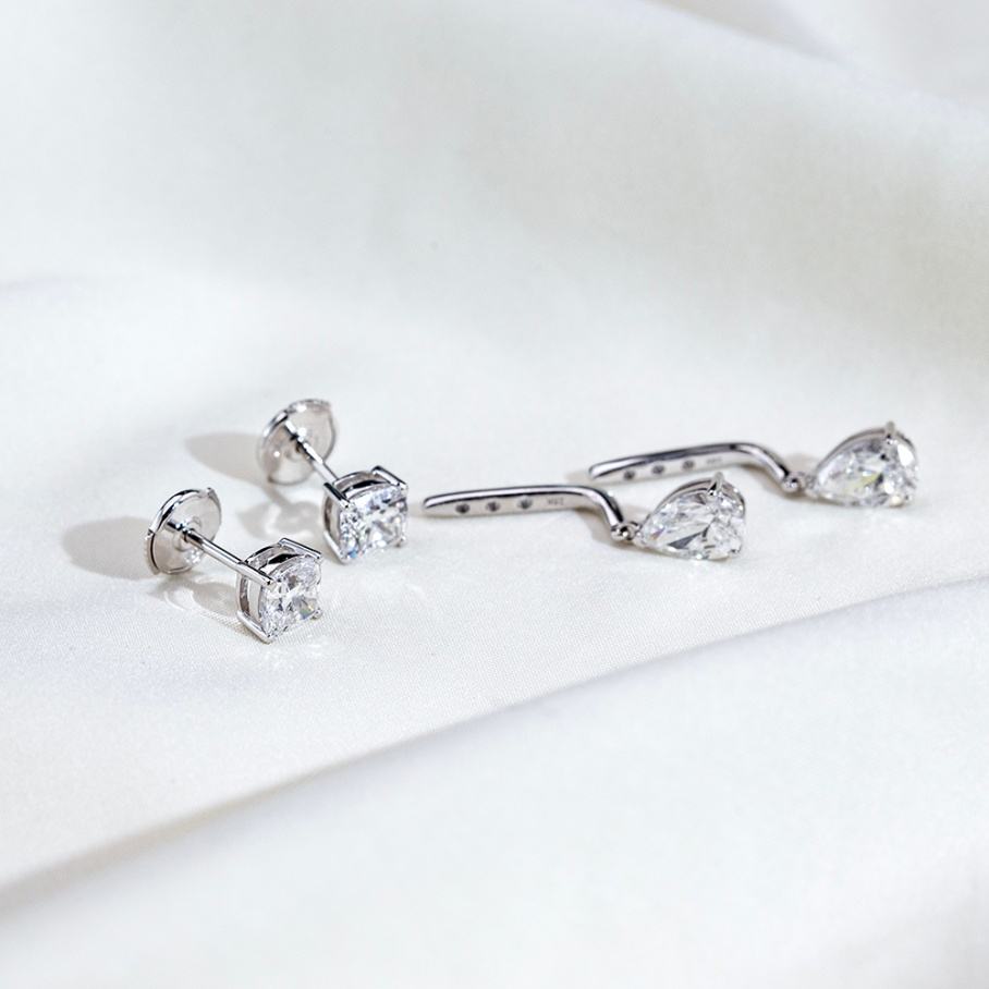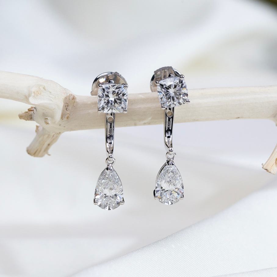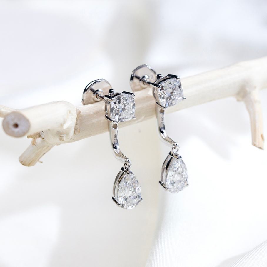 ต่างหูเพชรทรงลูกแพร์แบบคัสตอม รุ่น MSE-870 ดีไซน์ทันสมัย ทอง 18k เพชรเลี้ยงในห้องปฏิบัติการ