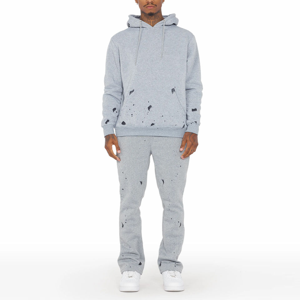 ชุดวิ่งออกกำลังกายแบบสวมหัวล้างกรดชุดวอร์มเหงื่อมีฮู้ดและขาตรงกางเกงขาบานชุดวอร์มสำหรับผู้ชาย