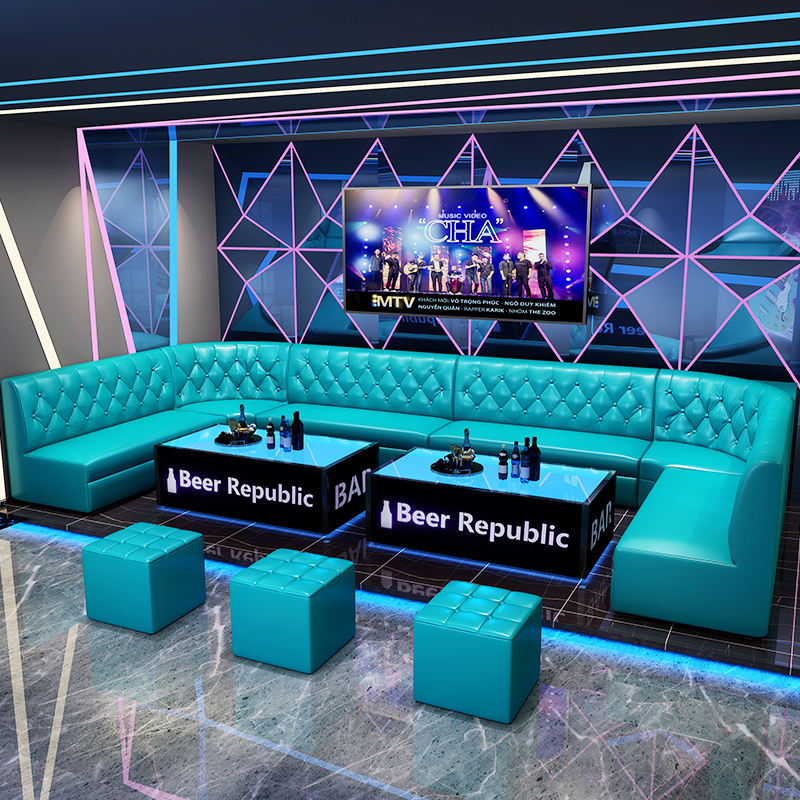 ชุดโซฟาคาราโอเกะแบบกำหนดเองพร้อมกล่องเก็บของ โต๊ะกาแฟ สำหรับผับ บาร์ดนตรี ห้องไฮ ร้านอาหาร ชุดสำหรับโรงแรม