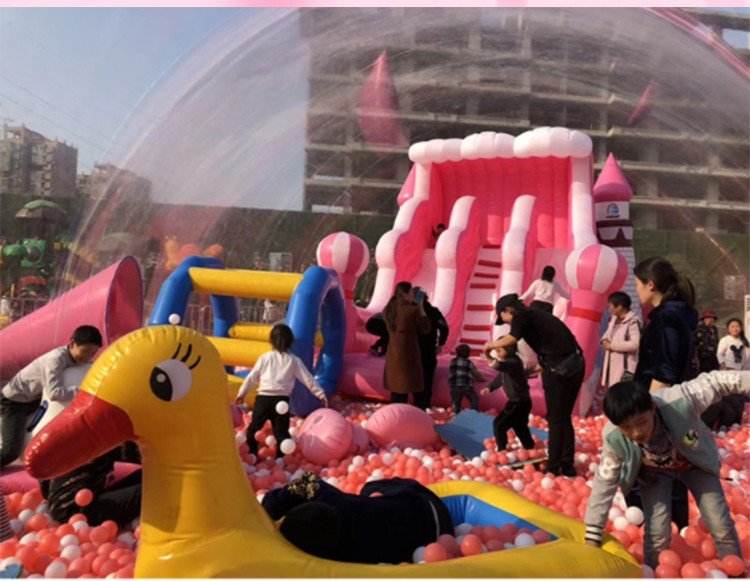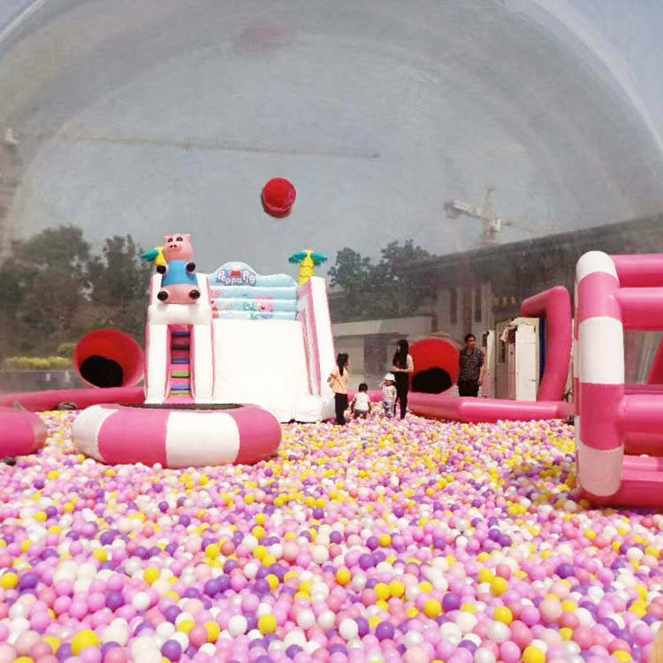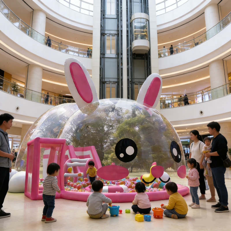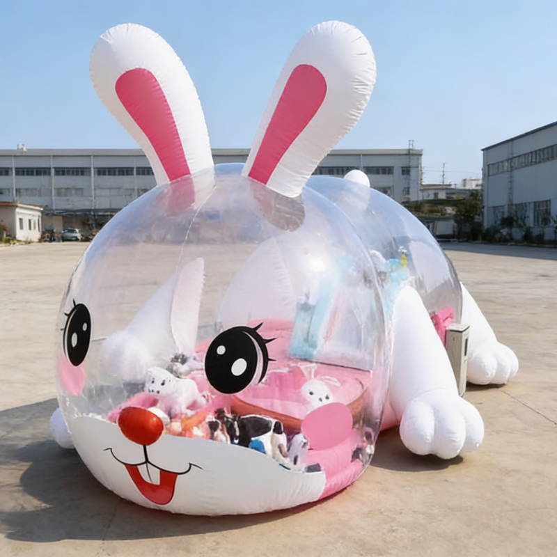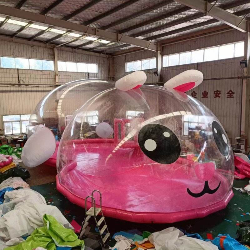 บ้านลมเป่าลมรูปกระต่ายสีชมพูสำหรับเด็ก สนามเด็กเล่นธีมการ์ตูน บอลใส คริสตัลพาเลซ