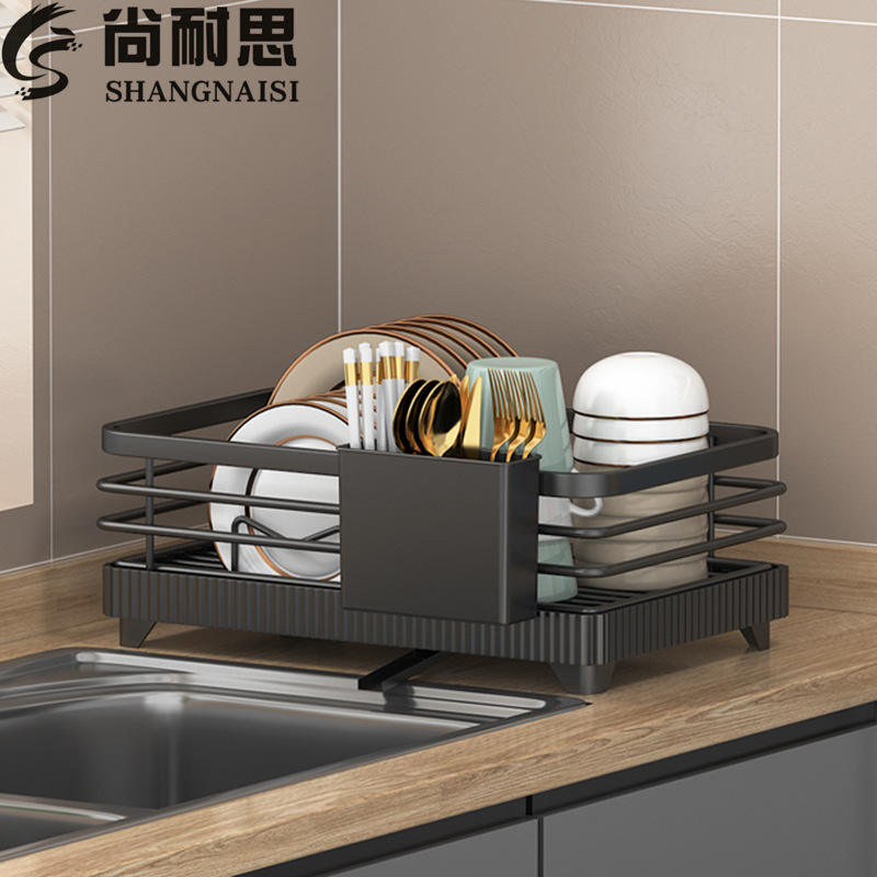 ชั้นวางจานระบายน้ำ แบบชั้นเดียว สีดำ รุ่นมาตรฐาน
