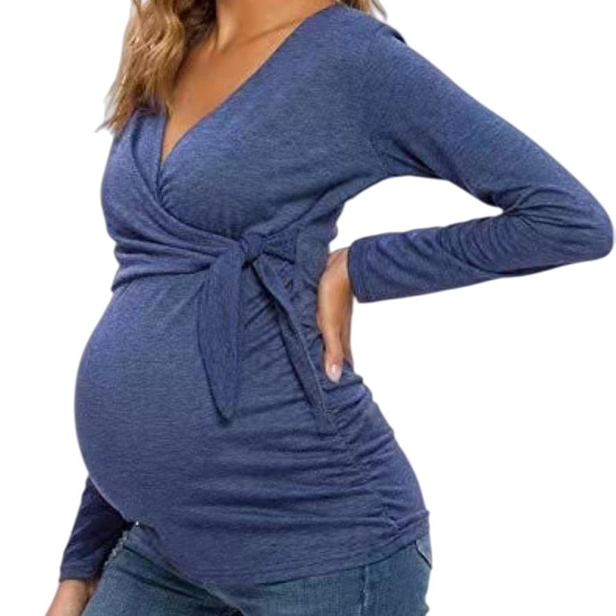 ชุดนอนคุณแม่ทำจากไม้ไผ่สำหรับคนท้องผ้าคอตตอนสวมใส่สบายยืดหยุ่นสีพื้นเสื้อผ้าสำหรับคนท้อง
