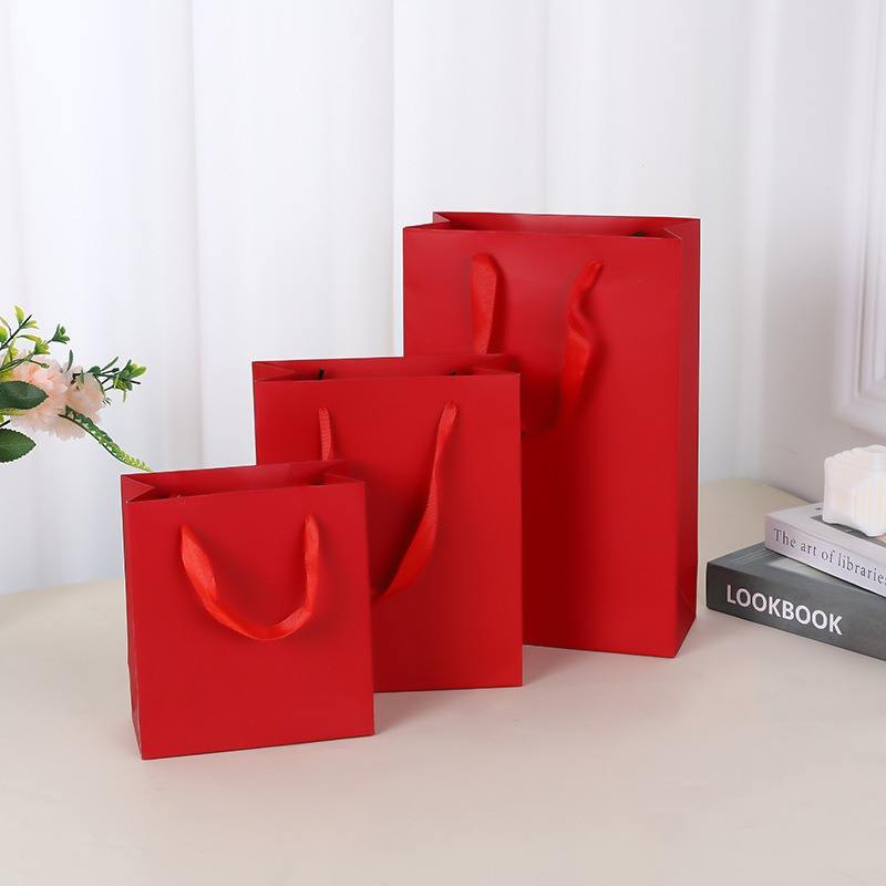 ถุงของขวัญกระดาษคราฟท์แบบกำหนดเอง ปิดด้วยแม่เหล็ก หูหิ้วเชือกฝ้าย พิมพ์ออฟเซ็ต สไตล์หรูหรา สีแดง สำหรับวันเกิด