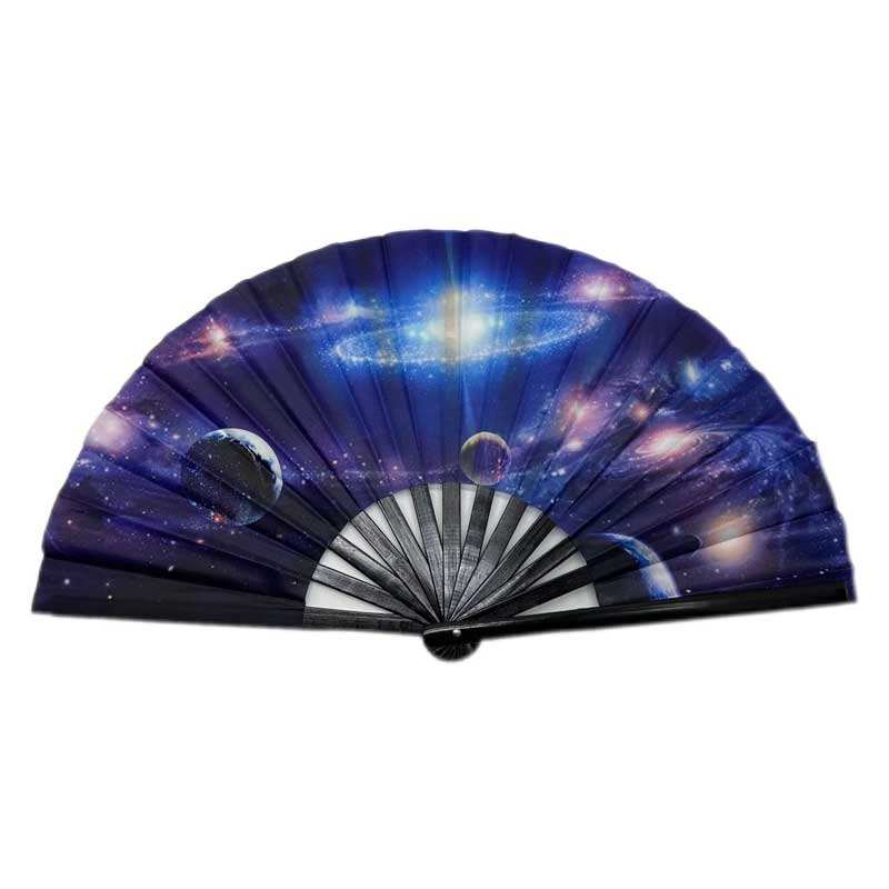 พัดมือพับได้แบบกำหนดเอง ขนาด 33 ซม. ทำจากไม้ไผ่ สีดำ สะท้อนแสง