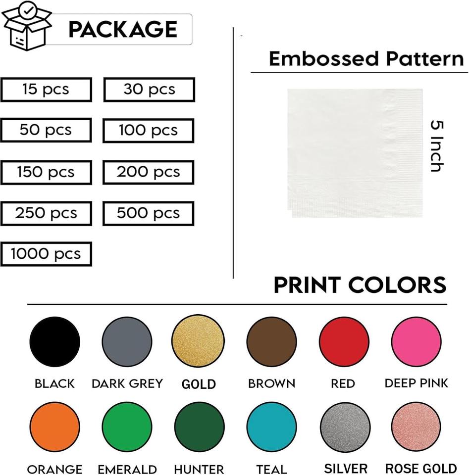 ผ้าเช็ดปากสำหรับงานแต่งงานทรงสี่เหลี่ยมแบบโมเดิร์นออกแบบโลโก้ได้ตามต้องการสำหรับงานอีเวนต์