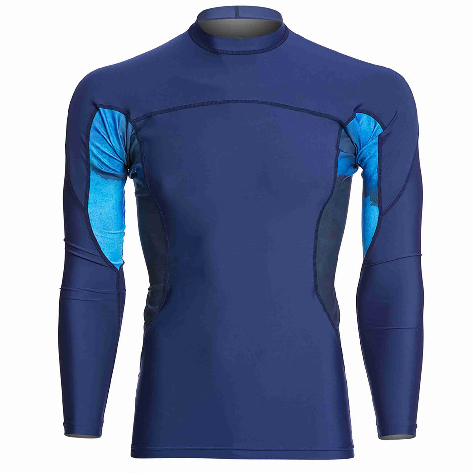 ชุดว่ายน้ำแขนยาวพิมพ์ลายโลโก้ตามสั่งสำหรับผู้ชาย ชุดรัชการ์ดพิมพ์ลายดิจิทัล ป้องกันผิวจากแสงแดด แห้งเร็ว สำหรับผู้ชาย