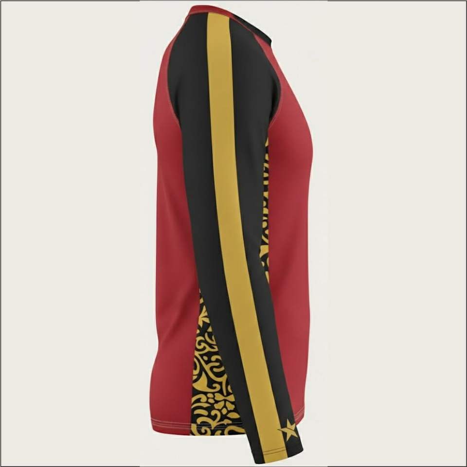 ตำแหน่งโลโก้:ด้านหน้า, แขนเสื้อด้านซ้าย, แขนเสื้อด้านขวา, ด้านหลัง, หลังคอ, ขอบล่าง