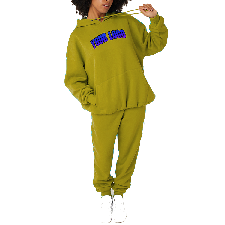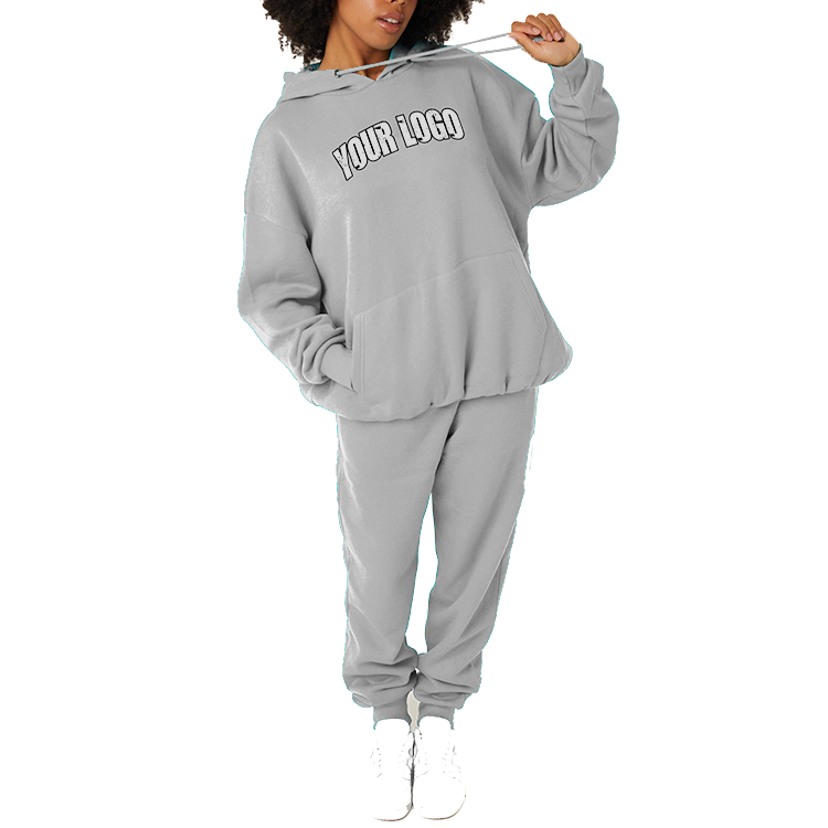 ชุดฮู้ดดี้สตรีทแวร์โลโก้แบบกำหนดเอง ผ้าฝ้าย 300 กรัม ชุดฮู้ดดี้และกางเกงขายาวทรงหลวม ชุดออกกำลังกายสำหรับผู้ชายและผู้หญิง