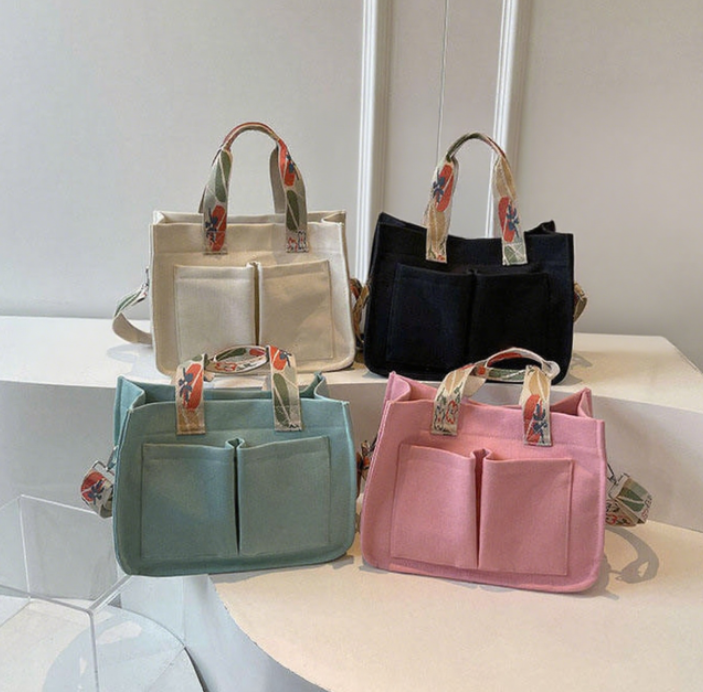 กระเป๋าสะพายข้างลำลองสำหรับผู้หญิงพร้อมโลโก้แบบกำหนดเอง, กระเป๋าผ้าใบอเนกประสงค์แบรนด์ดังสำหรับผู้หญิง, กระเป๋าช้อปปิ้ง