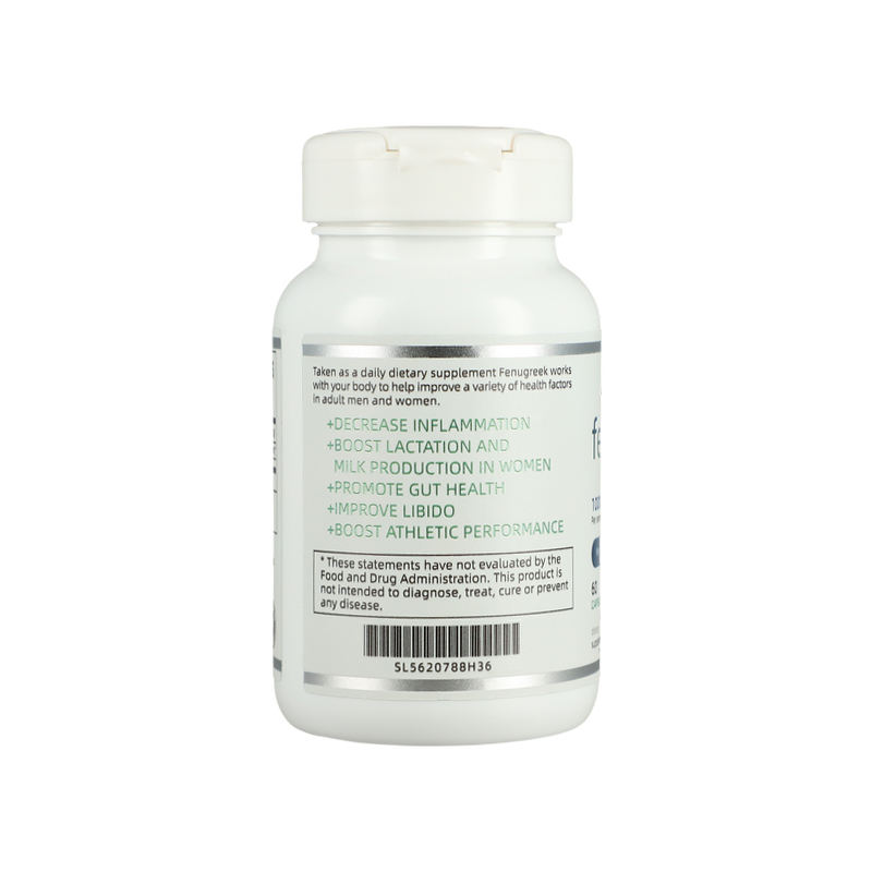ผู้ผลิตแคปซูลเมล็ดฟีนูกรีกแบบกำหนดเอง ปราศจากสาร GMO ปราศจากกลูเตน สารสกัดช่วยเพิ่มปริมาณน้ำนม 60 แคปซูล อาหารเสริม