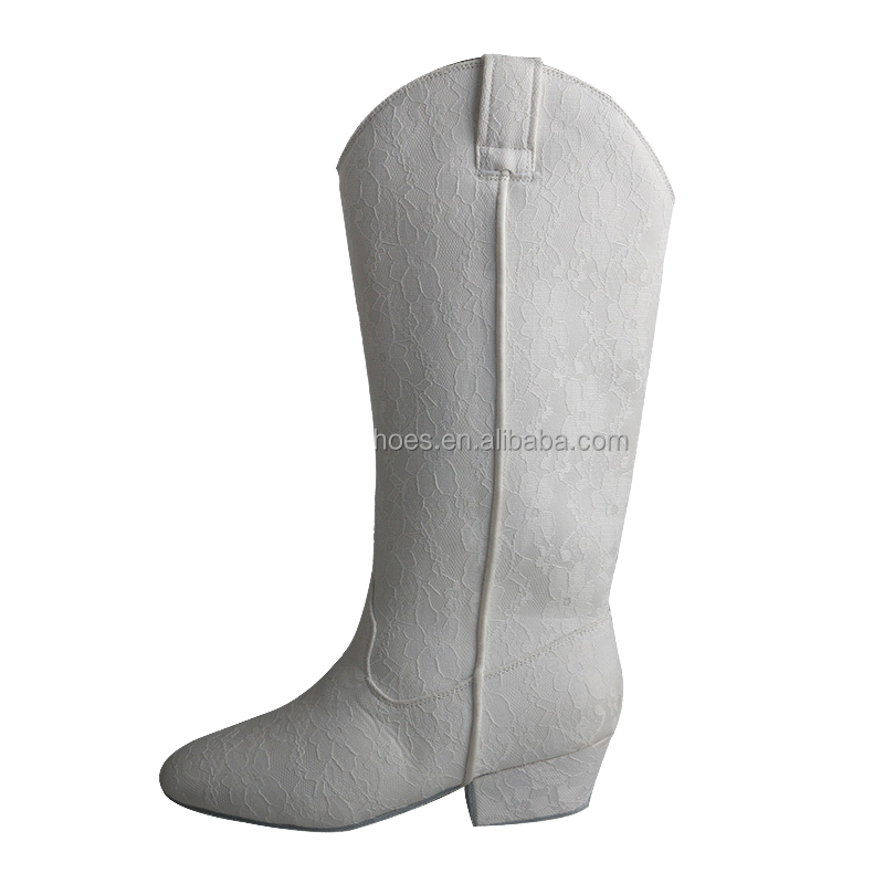 รองเท้าบูทเต้นรำแบบสวม ส้นคิวบา หนังกลับ พื้นนุ่ม สไตล์ตะวันตก สีงาช้าง แต่งลูกไม้ สำหรับผู้หญิง เหมาะสำหรับเต้นไลน์แดนซ์และงานแต่งงาน
