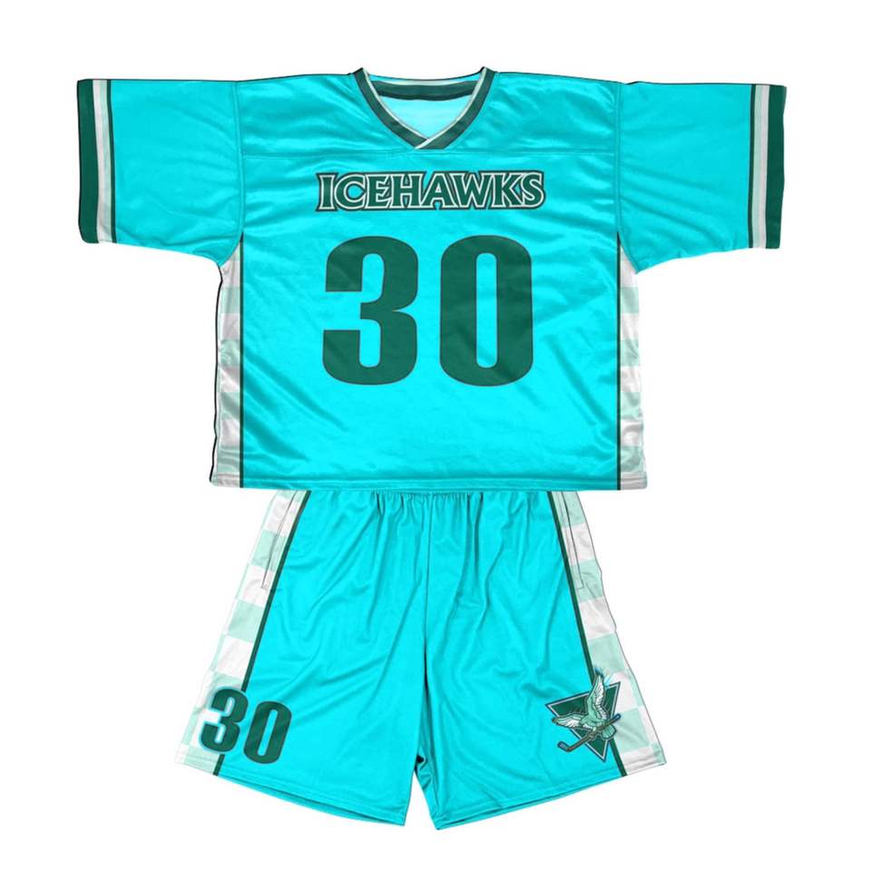 ชุดเครื่องแบบลาครอสของผู้ชายแบบใส่กลับด้านได้ชุดเล่นกีฬาผ้าโพลีเอสเตอร์แบบระเหิดกางเกงขาสั้นเสื้อเจอร์ซี่พิมพ์ลาย