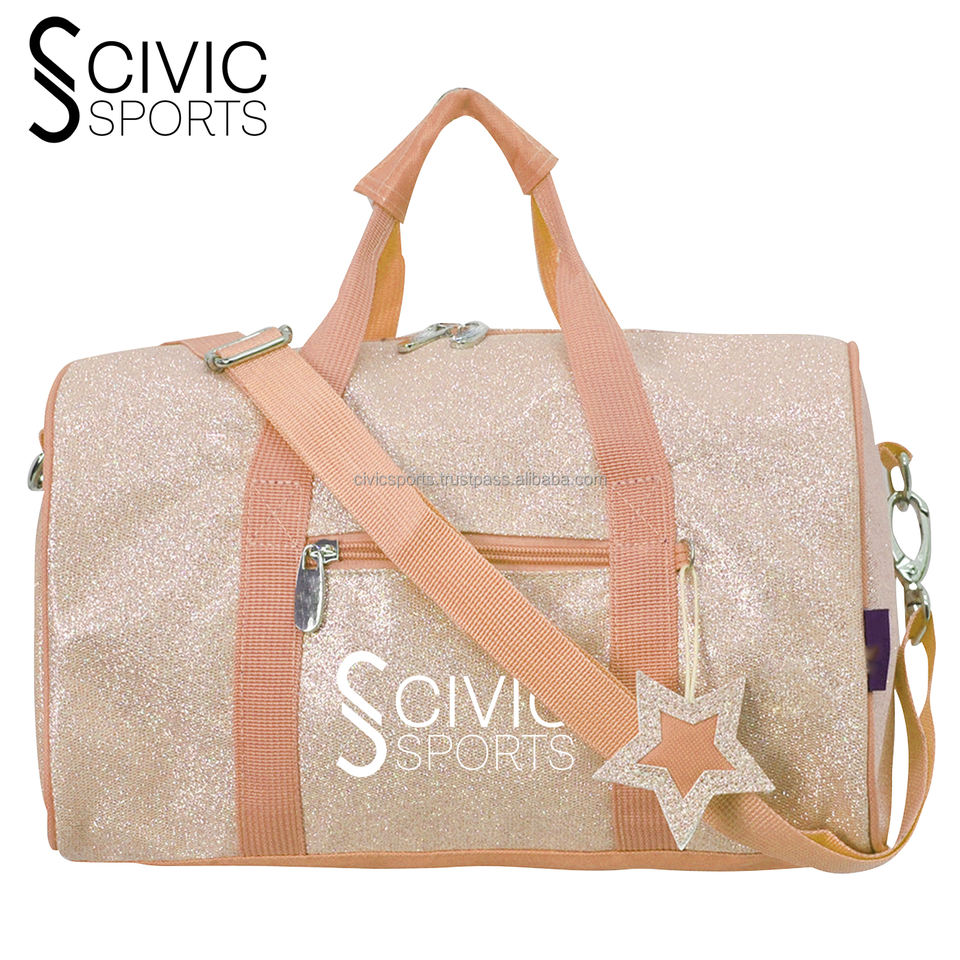 กระเป๋าทรงดัฟเฟิลกิตเตอร์ของแท้สำหรับผู้หญิงกระเป๋าแบบมีซิปปิดสำหรับวันหยุดสุดสัปดาห์กลางแจ้งกระเป๋าใส่กลิตเตอร์ออกแบบโลโก้ได้ตามต้องการความจุมาก