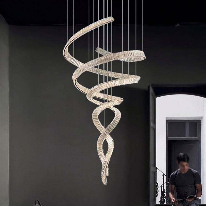 โคมไฟระย้าคริสตัลแบบเกลียวยาวห้อย LED ปรับได้สำหรับวิลล่าห้องนั่งเล่นปรับความสูงได้
