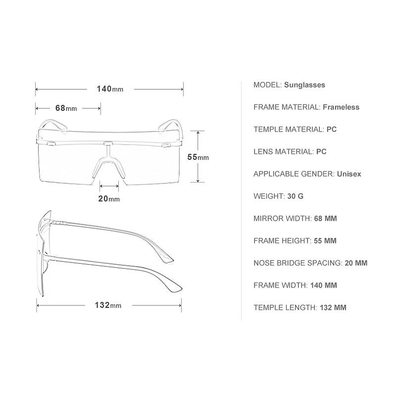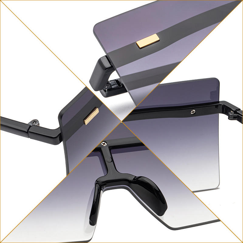 แว่นกันแดดทรงสี่เหลี่ยมขนาดใหญ่แบบไร้กรอบสำหรับผู้หญิง กรอบสีทอง เลนส์ PC ป้องกันรังสียูวี 400 แฟชั่นสไตล์อินสตาแกรม รุ่น 6932