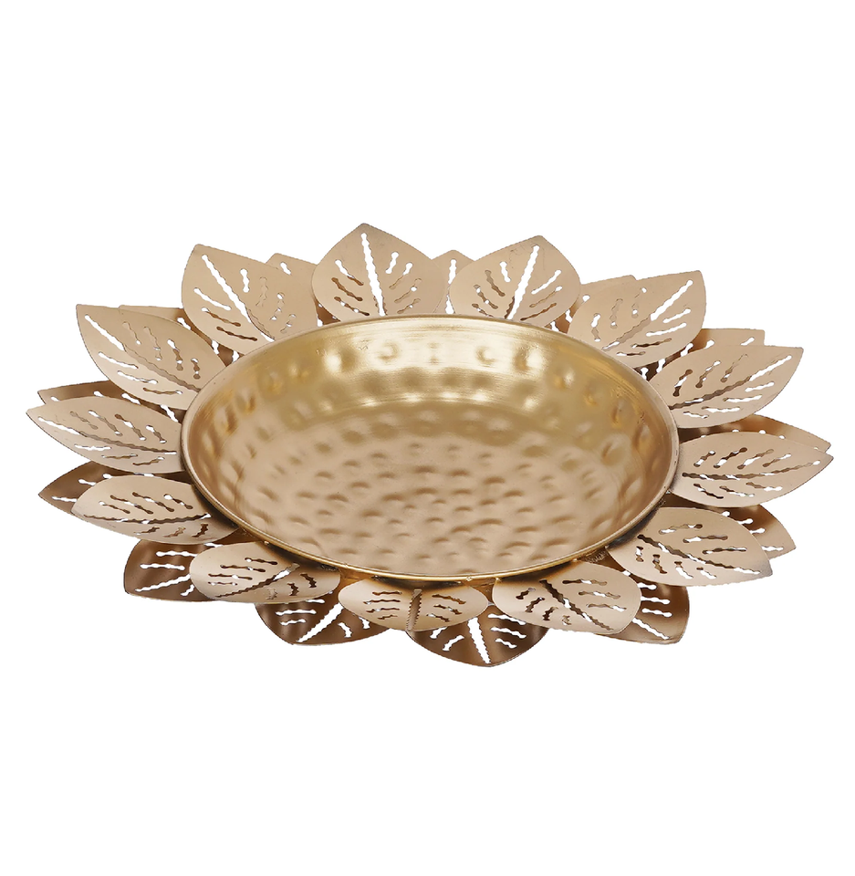 ชามทองเหลืองเคลือบเงาสีทองออกแบบลายใบไม้ทำด้วยมือ