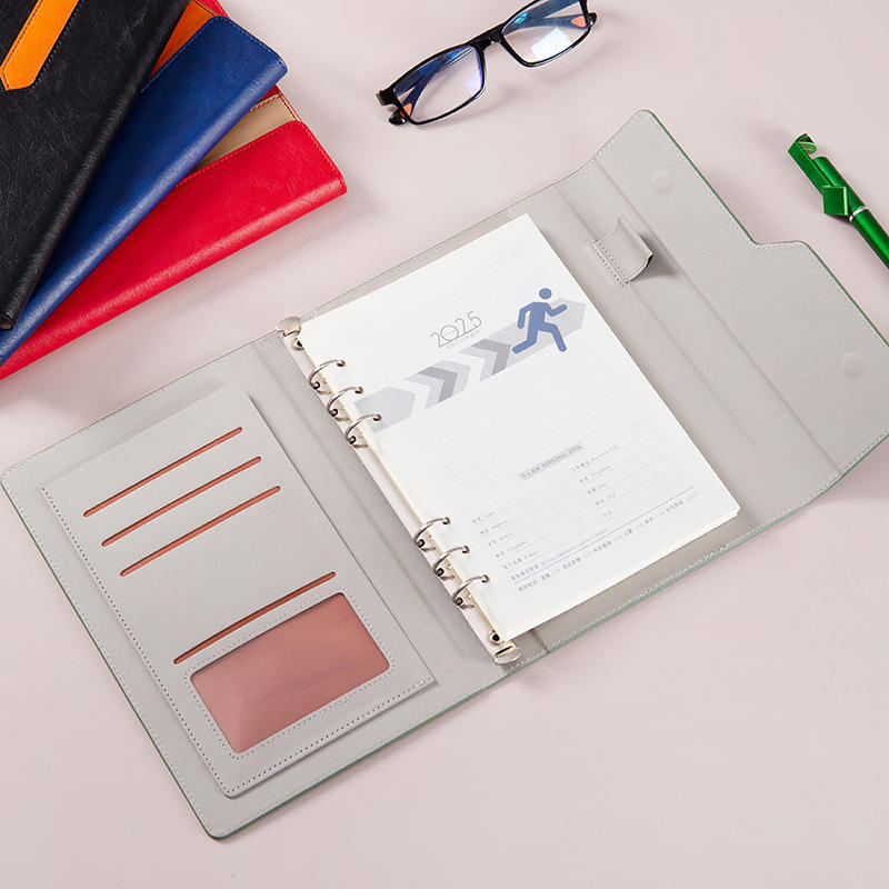 สมุดโน้ตหนังแบบกำหนดเองขนาด A5 แบบถอดได้พร้อมเข้าเล่มหกรู สำหรับการประชุมในสำนักงานธุรกิจและการส่งเสริมการขาย