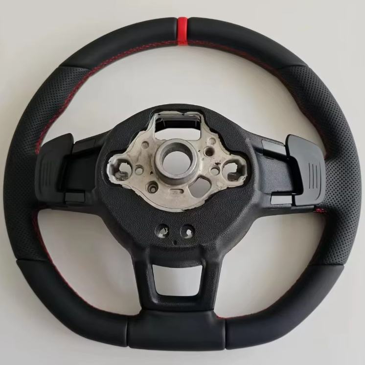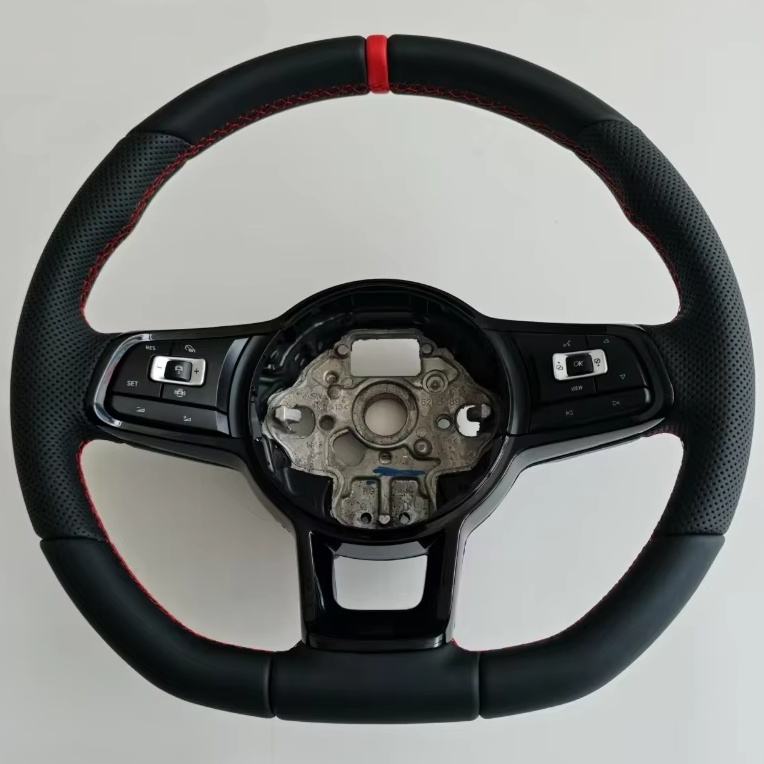 พวงมาลัยหนังแท้แบบกำหนดเองสำหรับรถยนต์ VW Golf Polo Caddy Beetle MK4 MK7 7.5R
